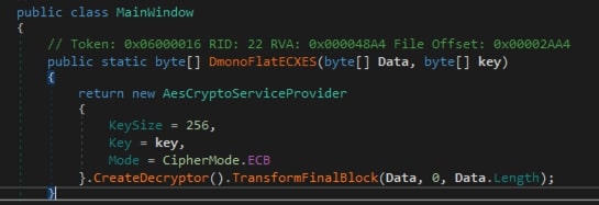 Examining the relevant code in the sample in dnspy, we observe the following: